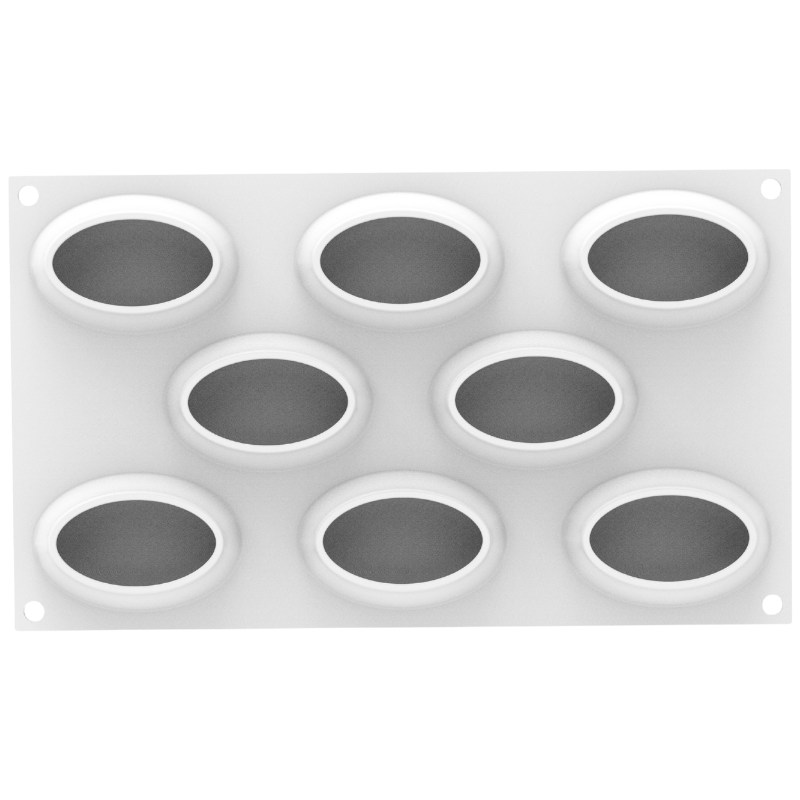 Zestaw do owalnych monoporcji składający się z formy silikonowej i wykrojnika. Dwustronny wykrojnik przeznaczony jest do tworzenie podstawy i wypełnienia deserów musowych. Wykrojnik wykonany z tworzywa nie nadaje się do użytkowania w piekarniku oraz kuchence mikrofalowej. Zewnętrzny wykrojnik służy do wykrawanie elementów z ciasta kruchego lub innych rodzajów ciast, w tym biszkoptu lub ciasta francuskiego. Wewnętrzny wykrojnik doskonale sprawdzi się do wykrawania żelowego lub chrupiącego wypełnienia do deserów musowych.