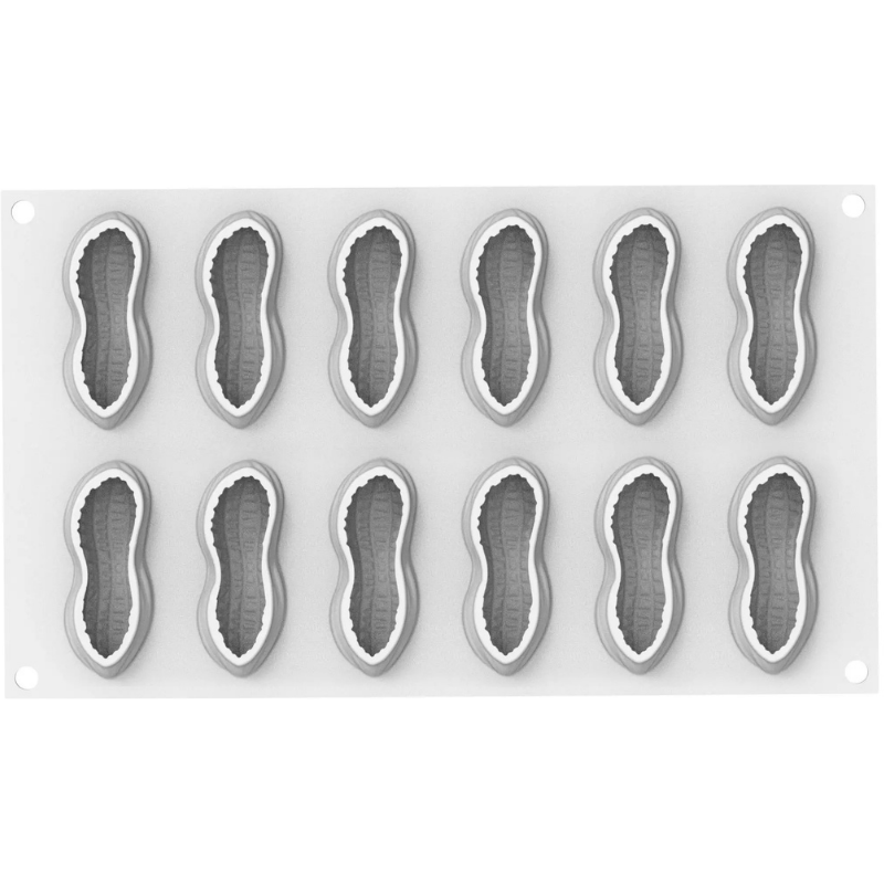 Zestaw do orzechowych deserów składający się z formy silikonowej i dwustronnego wykrojnika. Oryginalny kształt pozwala na tworzenie zaskakujących kreacji cukierniczych z charakterystycznym efektem 3D. Forma pozwala na jednorazowe przygotowanie 12 porcji o wymiarach dł. 72 mm x szer. 29 mm x wys. 27 mm i pojemności 30 ml.