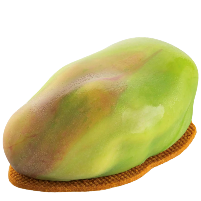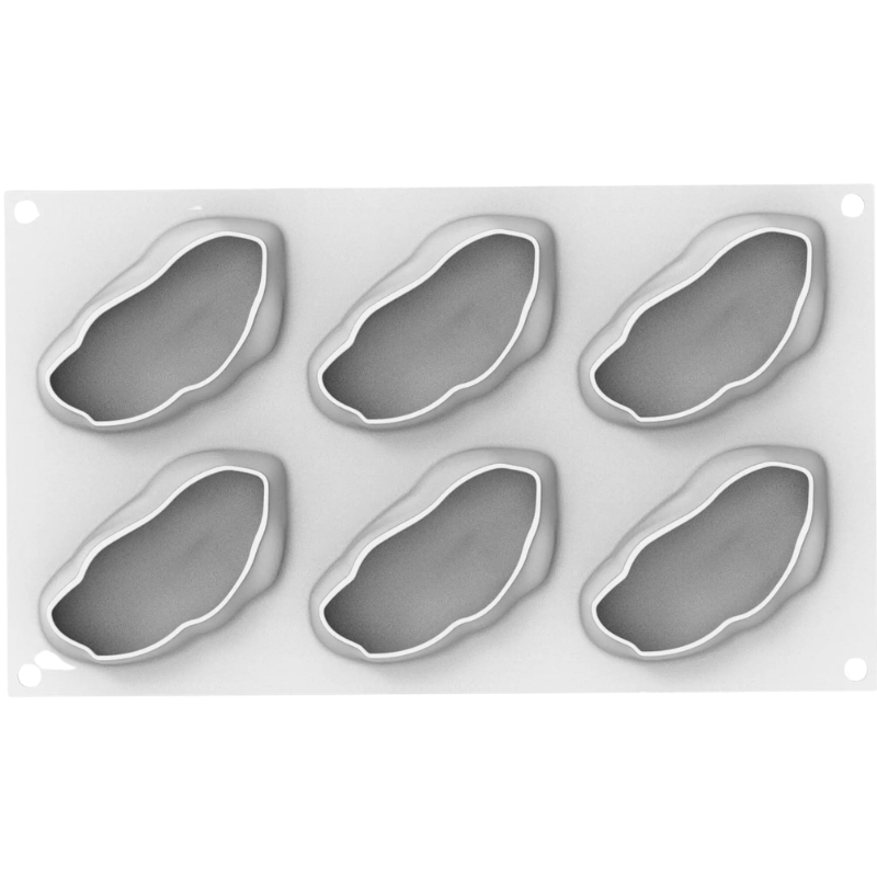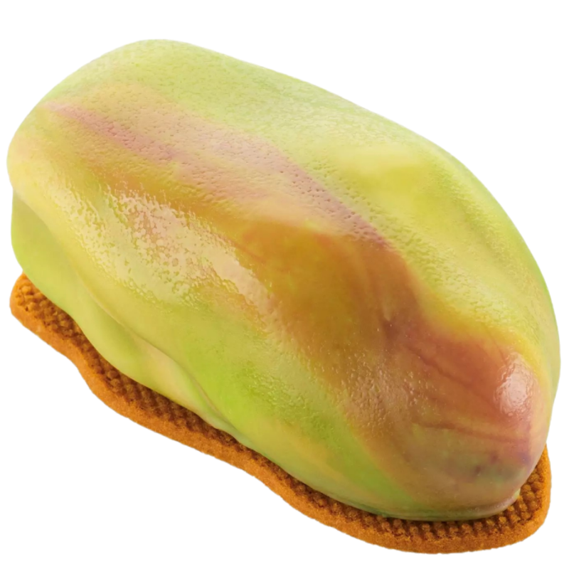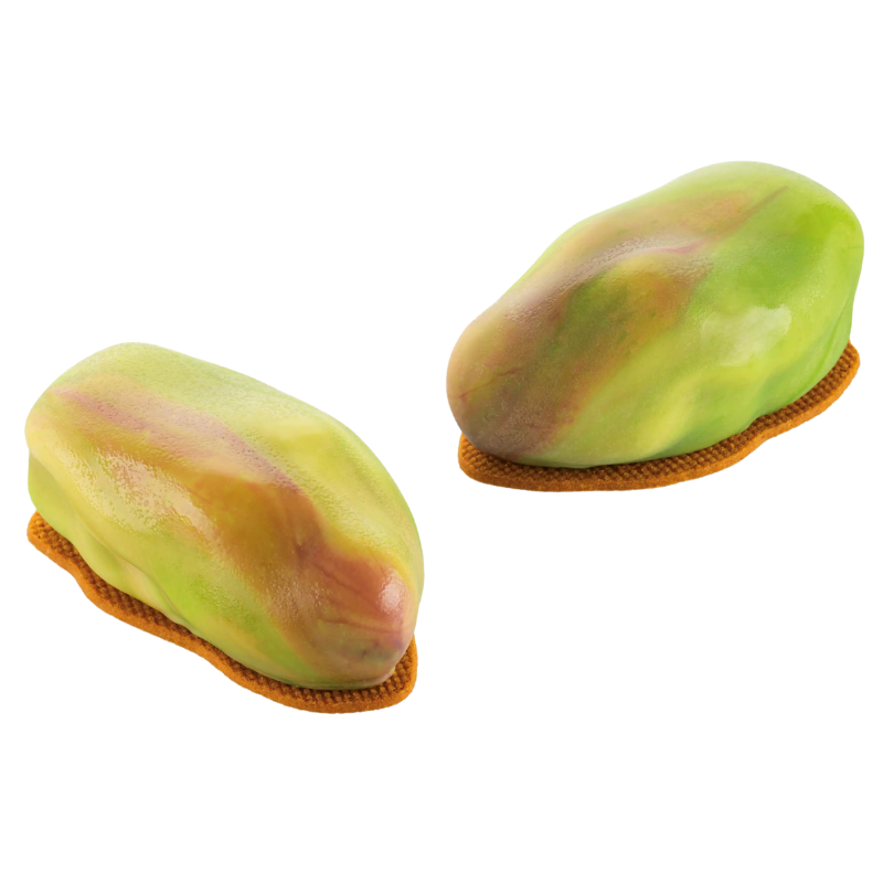 Zestaw do pistacjowych deserów składający się z formy silikonowej i dwustronnego wykrojnika. Oryginalny kształt pozwala na tworzenie zaskakujących kreacji cukierniczych z charakterystycznym efektem 3D. Forma pozwala na jednorazowe przygotowanie 12 porcji o wymiarach dł. 62 mm x szer. 35 mm x wys. 25 mm i pojemności 30 ml.