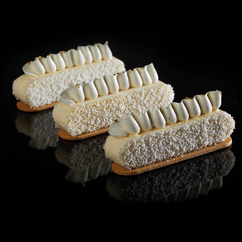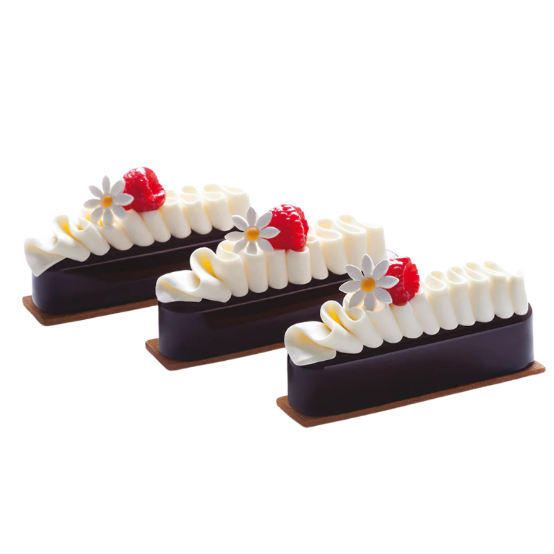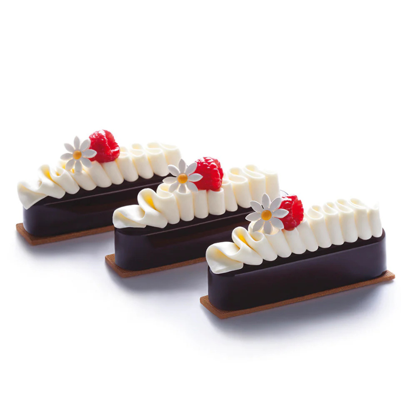 Zestaw składający się z formy silikonowej oraz wykrojnika do tworzenia nowoczesnych deserów inspirowanych klasycznym eklerem. Oryginalny kształt pozwala na eksperymentalne łączenie smaków i tekstur oraz tworzenie efektownych dekoracji.