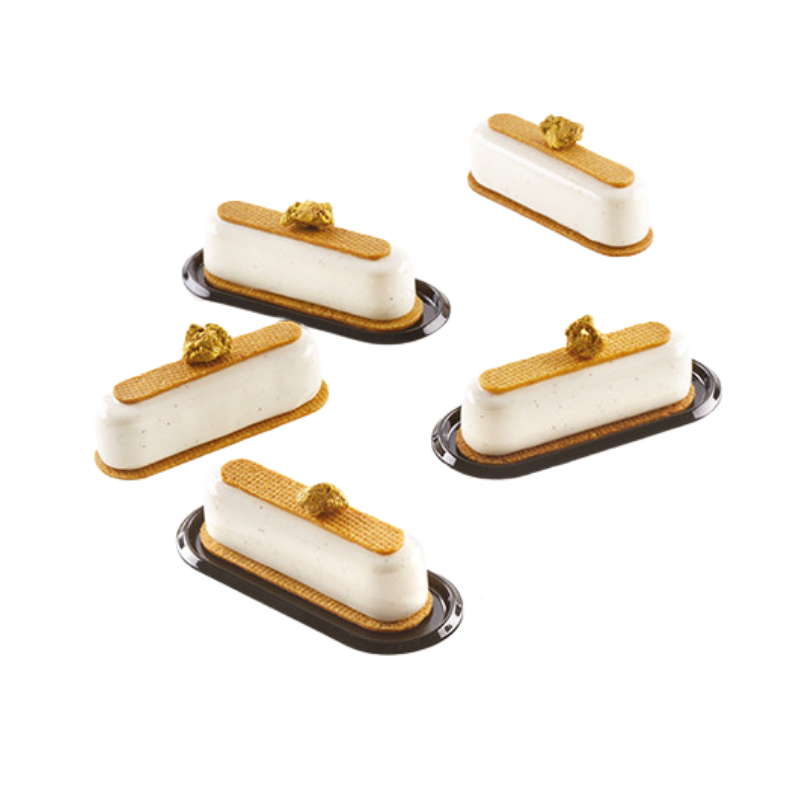 Zestaw składający się z formy silikonowej oraz wykrojnika do tworzenia nowoczesnych deserów inspirowanych klasycznym eklerem. Nieskomplikowany kształt pozwala na eksperymentalne łączenie smaków i tekstur oraz tworzenie efektownych dekoracji.
