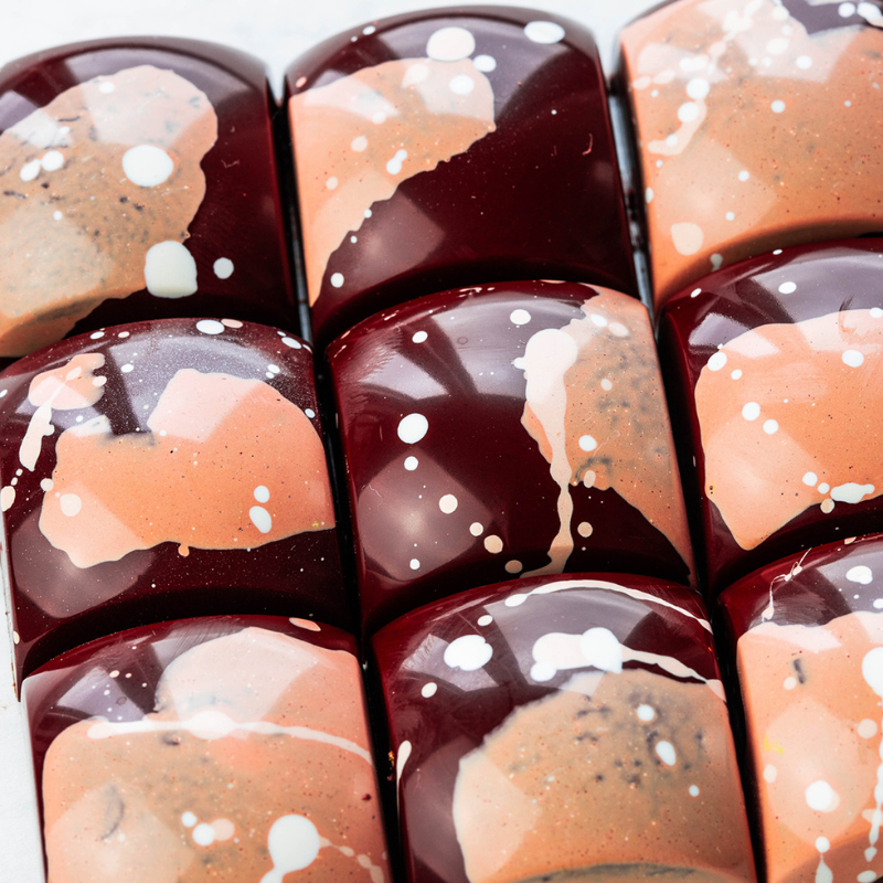 Kolekcja form do tworzenia dekoracyjnych pralin i czekoladek. Dopracowane klasyczne i nowoczesne wzory przeznaczone do ręcznego i maszynowego formowania. Wykonane z wytrzymałego i odpornego poliwęglanu o półtransparentnej barwie. Zobacz jak pracować z formą:
