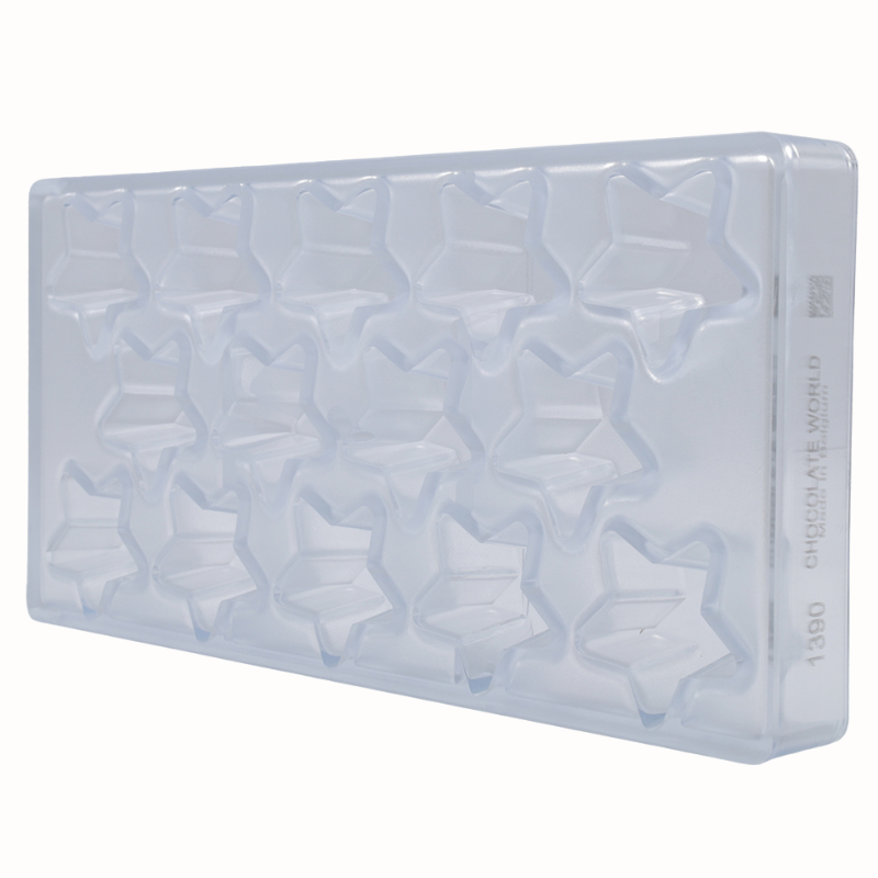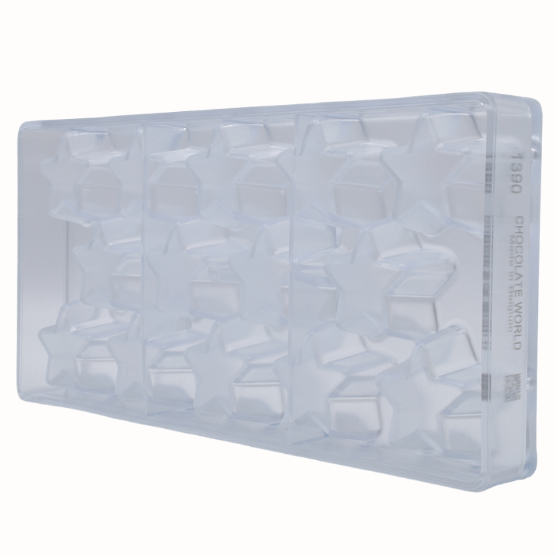 Formy do pracy z czekoladą wykonane z poliwęglanu charakteryzują się wyjątkową trwałością i wytrzymałością. Są odporne na uszkodzenia mechaniczne oraz działanie zarówno wysokich jak i niskich temperatur. Materiał, z którego wykonane są formy zapewnia idealnie błyszczącą powierzchnię wyrobów czekoladowych oraz zmniejsza ryzyko wystąpienia matowych plam. Zapewnia również równomierne rozprowadzanie ciepła, co ma ogromne znaczenie podczas pracy z czekoladą. Dodatkową zaletą form wykonanych z poliwęglanu jest ich transparentna barwa, która pozwala na kontrolę podczas formowania kształtów. Ponadto materiał pod wpływem zmian temperatury kurczy się wolniej niż czekolada, co znacznie ułatwia proces wyjmowania kształtów z formy. Przed wlaniem czekolady, formę należy lekko podgrzać, co zapobiega zbyt dużej różnicy temperatur i tym samym zmętnieniu czekolady. Formy należy napełniać jedynie odpowiednio zatemperowaną czekoladą.