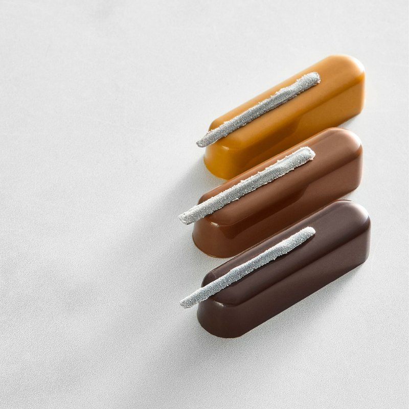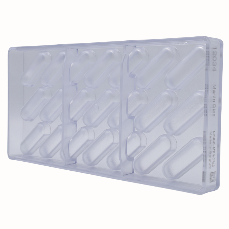Kolekcja form do tworzenia dekoracyjnych pralin i czekoladek. Dopracowane klasyczne i nowoczesne wzory przeznaczone do ręcznego i maszynowego formowania. Wykonane z wytrzymałego i odpornego poliwęglanu o półtransparentnej barwie. Zobacz jak pracować z formą: