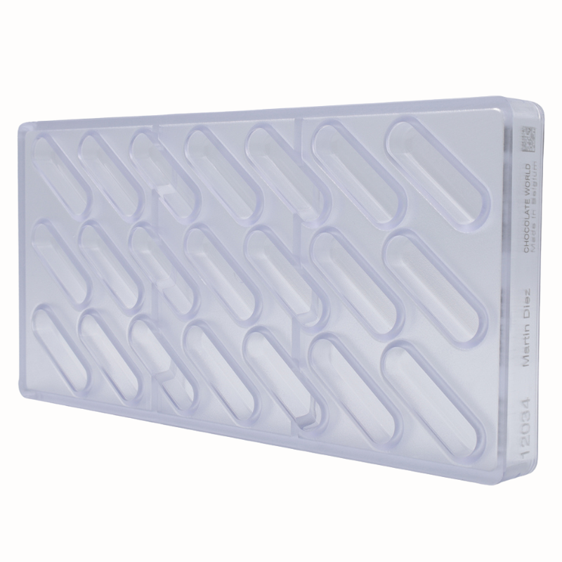 CW12034 ÉCLAIR CHOCOLATE WORLD - forma z poliwęglanu do pralin - dł. 49 x szer. 14 x wys. 12 mm / poj. 8.5 g x 21 pralin