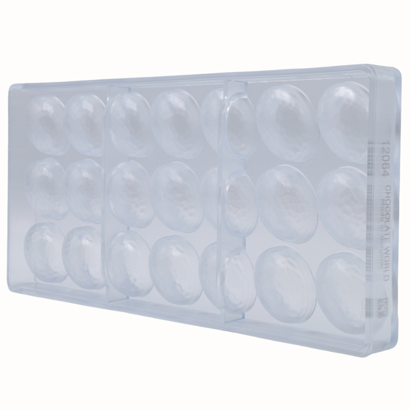 Kolekcja form do tworzenia dekoracyjnych pralin i czekoladek. Dopracowane klasyczne i nowoczesne wzory przeznaczone do ręcznego i maszynowego formowania. Wykonane z wytrzymałego i odpornego poliwęglanu o półtransparentnej barwie. Zobacz jak pracować z formą:
