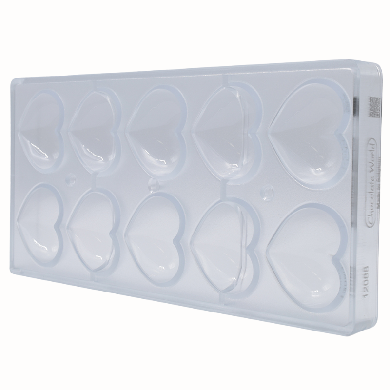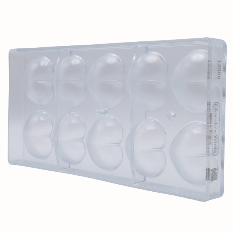 Formy do pracy z czekoladą wykonane z poliwęglanu charakteryzują się wyjątkową trwałością i wytrzymałością. Są odporne na uszkodzenia mechaniczne oraz działanie zarówno wysokich jak i niskich temperatur. Materiał, z którego wykonane są formy zapewnia idealnie błyszczącą powierzchnię wyrobów czekoladowych oraz zmniejsza ryzyko wystąpienia matowych plam. Zapewnia również równomierne rozprowadzanie ciepła, co ma ogromne znaczenie podczas pracy z czekoladą. Dodatkową zaletą form wykonanych z poliwęglanu jest ich transparentna barwa (niekiedy półtransparentna - lekko żółta), która pozwala na kontrolę podczas formowania kształtów. Ponadto materiał pod wpływem zmian temperatury kurczy się wolniej niż czekolada, co znacznie ułatwia proces wyjmowania kształtów z formy. Przed wlaniem czekolady, formę należy lekko podgrzać, co zapobiega zbyt dużej różnicy temperatur i tym samym zmętnieniu czekolady. Formy należy napełniać jedynie odpowiednio zatemperowaną czekoladą.