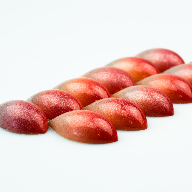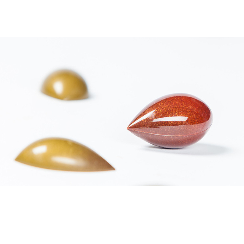 Formy do pracy z czekoladą wykonane z poliwęglanu charakteryzują się wyjątkową trwałością i wytrzymałością. Są odporne na uszkodzenia mechaniczne oraz działanie zarówno wysokich jak i niskich temperatur. Materiał, z którego wykonane są formy zapewnia idealnie błyszczącą powierzchnię wyrobów czekoladowych oraz zmniejsza ryzyko wystąpienia matowych plam. Zapewnia również równomierne rozprowadzanie ciepła, co ma ogromne znaczenie podczas pracy z czekoladą.