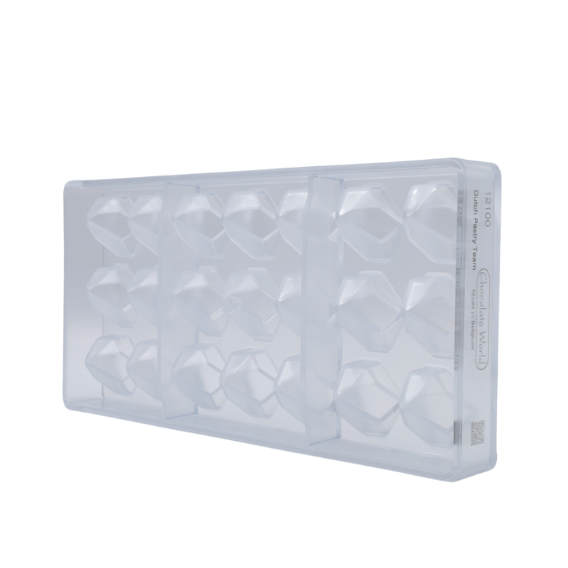 To forma z poliwęglanu do tworzenia nadziewanych i dekorowanych pralin w kształcie nieregularnych kryształów.