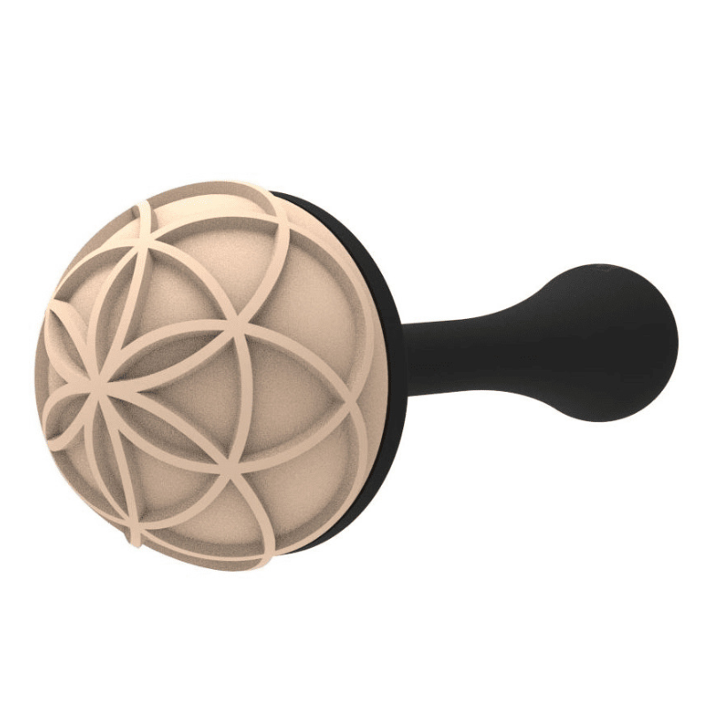 Proces odciskania dekoracyjnych wzorów za pomocą rozgrzanych silikonowych stempli jest możliwy dzięki zastosowaniu odpowiedniej, bardzo prostej techniki. Formę do pralin należy pokryć barwnikiem spożywczym przy użyciu aerografu. Barwnik pozostawić do zastygnięcia w formie. Podgrzać silikonową końcówkę stempla i odcisnąć wzór, a następnie od razu wytrzeć nadmiar rozgrzanego barwnika przy użyciu gąbeczki. W formie pozostaje zastygnięty barwnik, który tworzy dekoracyjny wzór. Po wypełnieniu formy odpowiednio zatemperowaną czekoladą wzór łączy się z czekoladą i pozwala uzyskać zaskakujący efekt. Dodatkowo kształt silikonowych stempli idealnie pasuje do wgłębień formy, co zapewnia maksymalną stabilność podczas fazy zdobienia. Zestaw gwarantuje uzyskanie perfekcyjnych dekoracji przy niewielkim nakładzie pracy.