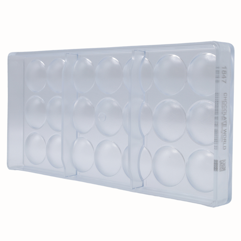 Profesjonalna forma z poliwęglanu przeznaczona do ręcznej i maszynowej produkcji wyrobów z czekolady. Stworzona we współpracy z Frank Haasnoot, inspirowana soczewką oka i działaniem obiektywu. Forma z serii "dubbel model" do worzenia wypukłych czekoladek lub trójwymiarowych pralin w kształcie soczewki. Forma pozwala na produkcję czekoladek 2D oraz 3D. Z formą można jednorazowo przygotować 21 wypukłych czekoladek o wadze 6 gramów.