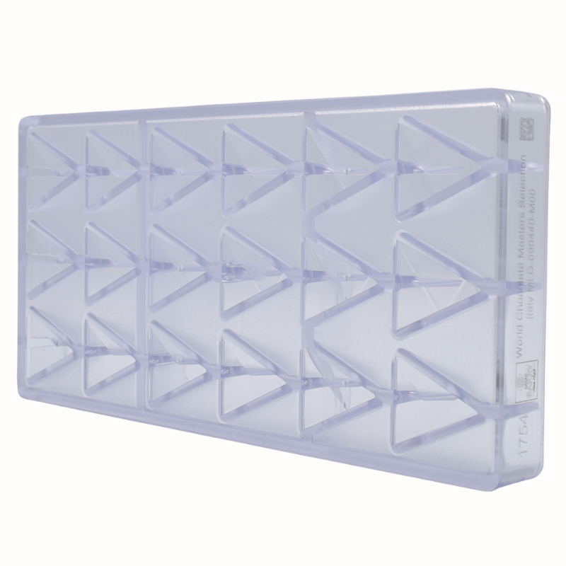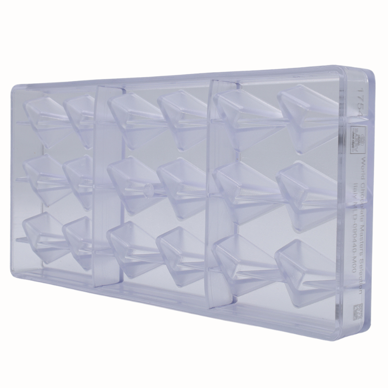 Formy do pracy z czekoladą wykonane z poliwęglanu charakteryzują się wyjątkową trwałością i wytrzymałością. Są odporne na uszkodzenia mechaniczne oraz działanie zarówno wysokich jak i niskich temperatur. Materiał, z którego wykonane są formy zapewnia idealnie błyszczącą powierzchnię wyrobów czekoladowych oraz zmniejsza ryzyko wystąpienia matowych plam. Zapewnia również równomierne rozprowadzanie ciepła, co ma ogromne znaczenie podczas pracy z czekoladą. Dodatkową zaletą form wykonanych z poliwęglanu jest ich transparentna barwa (niekiedy półtransparentna - lekko żółta), która pozwala na kontrolę podczas formowania kształtów. Ponadto materiał pod wpływem zmian temperatury kurczy się wolniej niż czekolada, co znacznie ułatwia proces wyjmowania kształtów z formy. Przed wlaniem czekolady, formę należy lekko podgrzać, co zapobiega zbyt dużej różnicy temperatur i tym samym zmętnieniu czekolady. Formy należy napełniać jedynie odpowiednio zatemperowaną czekoladą.