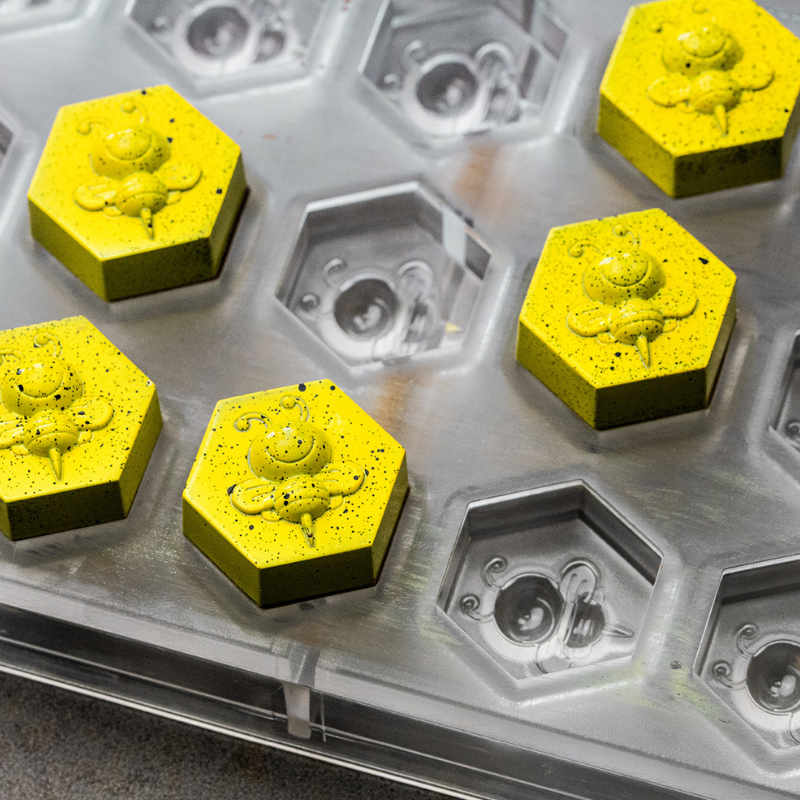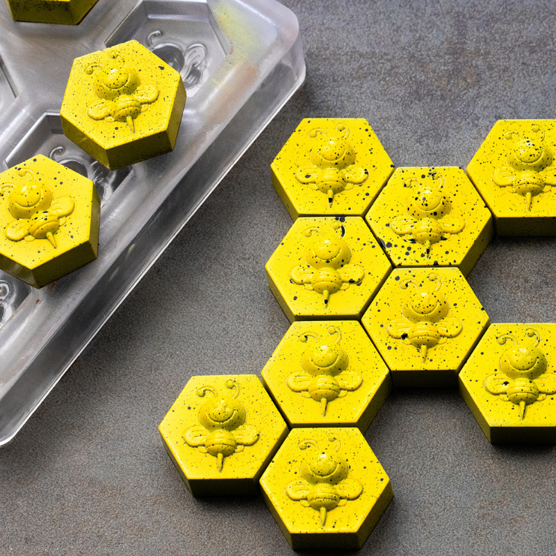 Forma do sześciokątnych pralin z wzorem pszczoły: