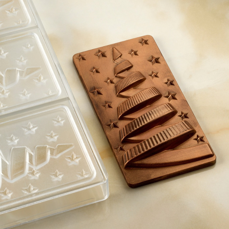 Forma do tworzenia dekoracyjnych tabliczek czekolady na Boże Narodzenie. Dopracowany i nowoczesny wzór stworzony we współpracy z Fabrizio Fiorani. Sygnowana forma do tabliczek czekolady wykonana z wytrzymałego tworzywa.