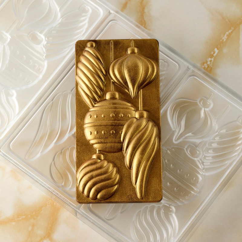 PC5058 Xmas Spirit Pavoni Italia - forma do tabliczek czekolady - bombki - dł. 154 x szer. 77 x wys. 15 mm / poj. 100 g