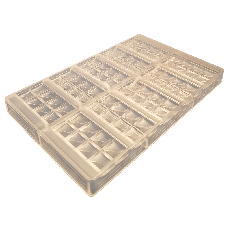Kolekcja form do tworzenia klasycznych, nowoczesnych, dekorowanych lub nadziewanych tabliczek czekolady. Dopracowane wzory przeznaczone do ręcznego i maszynowego formowania. Wykonane z wytrzymałego i odpornego poliwęglanu o półtransparentnej barwie.