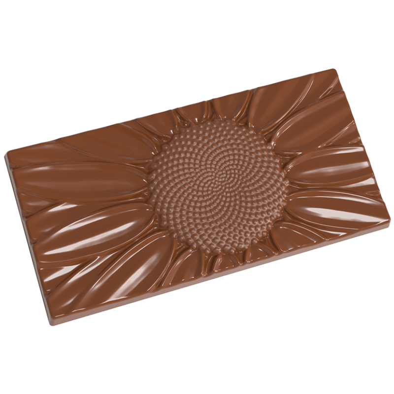 To forma z poliwęglanu do tworzenia dekoracyjnych tabliczek czekolady w strukturalny wzór kwiatu słonecznika.