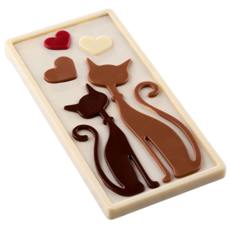 PC5080 Minou Pavoni Italia - forma do walentynkowych tabliczek czekolady - koty - dł. 154 x szer. 77 x wys. 9 mm / poj. 100 g