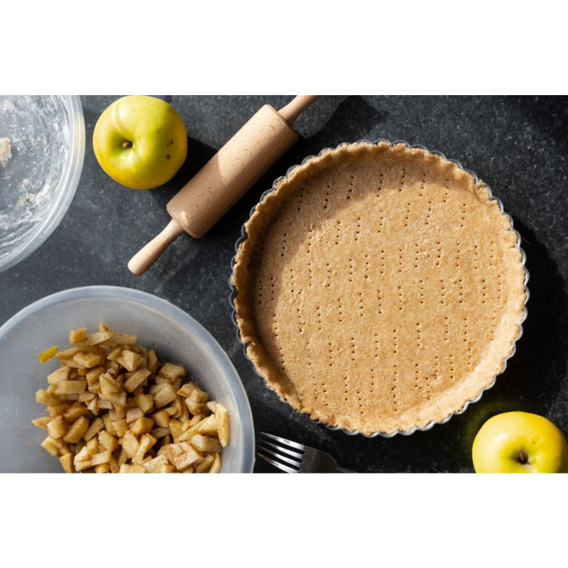 - Perforowana forma do wypieku wyjątkowo chrupiących spodów z ciasta kruchego.