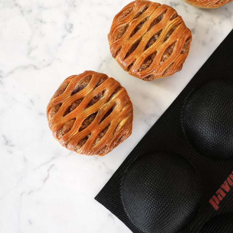 Innowacyjne połączenie materiałów zapewnia kontrolowane przewodzenie temperatury. Pozwala to na skrócenie czasu chłodzenia. Wzmocniona konstrukcja materiału zachowuje elastyczność nawet w niskich temperaturach. Materiał form zapewnia szybką i równomierną wymianę ciepła. Formy idealnie sprawdzają się do wypieku produktów drożdżowych, ciast, ciastek wiedeńskich, kruchego ciasta oraz innych słodkich i wytrawnych wyrobów. Konstrukcja form optymalizuje jakość produktu końcowego, zapewniając równomierny stopień wypieczenia i zarumienienia na całej powierzchni. Dodatkowo formy zachowują swój kształt nawet podczas najbardziej intensywnych procesów produkcyjnych.