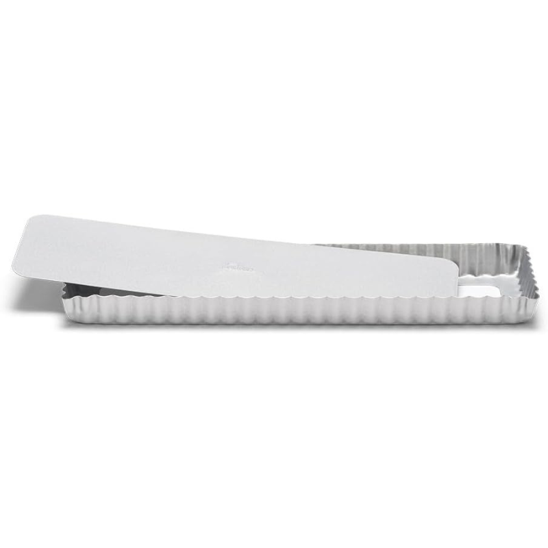 Metalowa forma z wyjmowanym dnem do wypieku słodkich i wytrawnych tart o prostokątnym kształcie. Przeznaczona jest do pieczenia w temperaturach do 230°C.