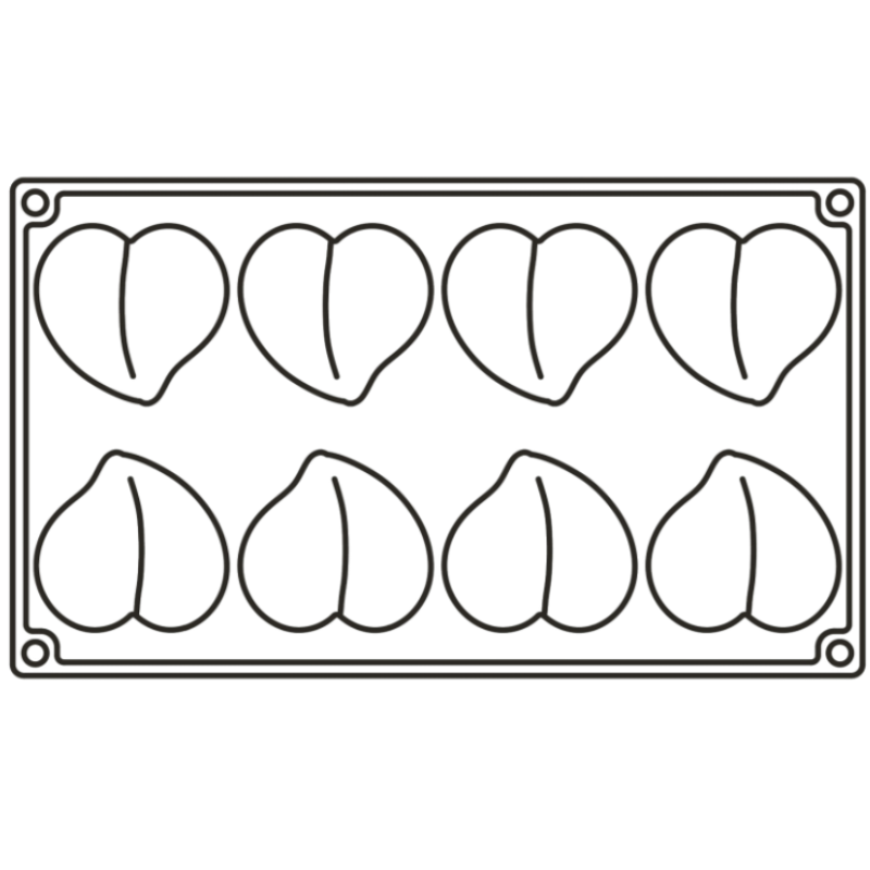 PX3206 Heart Pavoni - forma silikonowa do deserów w kształcie serca - dł. 65 x szer. 60 x wys. 1 mm / poj. 46 ml x 8 porcji