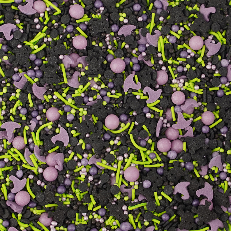 Autorska mieszanka przeznaczona do dekoracji słodyczy na Halloween. Będzie idealna do dekoracji: ciasteczek, pierniczków, babeczek, muffinek, tortów, deserów, wypieków, cake pops, pralin, trufli, czekolady, lodów oraz wielu innych słodkich wyrobów (a zwłaszcza tych z kremami i polewami). Posypki wykazują ograniczoną stabilność kolorów podczas dekorowania wyrobów mrożonych (w tym lodów).