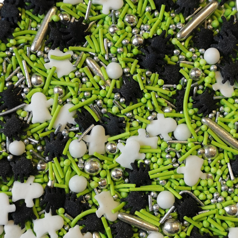 Autorska mieszanka posypek cukrowych do dekoracji wypieków i deserów na Halloween. Gotowy do użycia mix posypek do strasznie słodkich dekoracji. Uwaga! Rzeczywiste kolory posypek cukrowych mogą nieznacznie różnić się od wizualizacji ujętej na zdjęciach katalogowych produktu.