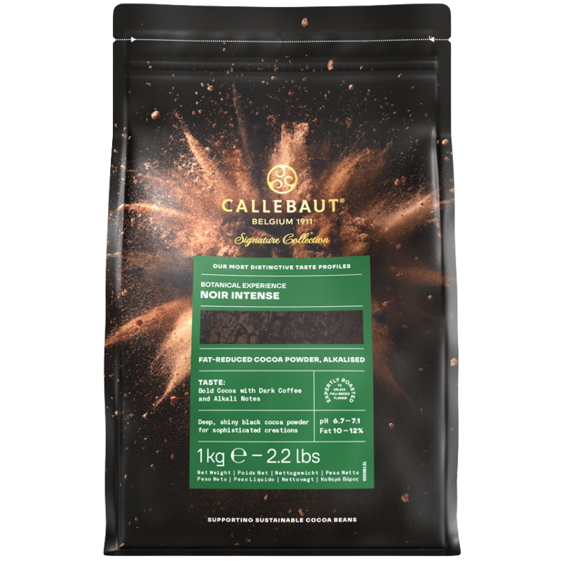Noir Intense to alkalizowane kakao w postaci bardzo drobnego proszku o obniżonej zawartości tłuszczu. Charakteryzuje się intensywną czarną barwą i mocnym gorzkim smakiem. Aromat kakao uzupełniają nuty ciasteczka oraz nuty kwiatowe i sezamowe. Doskonałe jako dodatek barwiący i aromatyczny do wyrobów cukierniczych i piekarniczych.