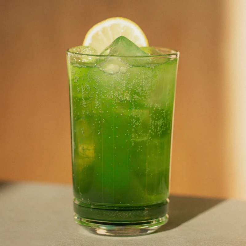 Składniki: woda, cukier, ekstrakt z zielonej herbaty, naturalny aromat, naturalny aromat zielonej herbaty Matcha, barwniki: karmel (E150a), błękit brylantowy FCF (E133), regulator kwasowości: kwas cytrynowy (E330), sól, substancje konserwujące: sorbinian potasu (E202), benzoesan sodu (E211).