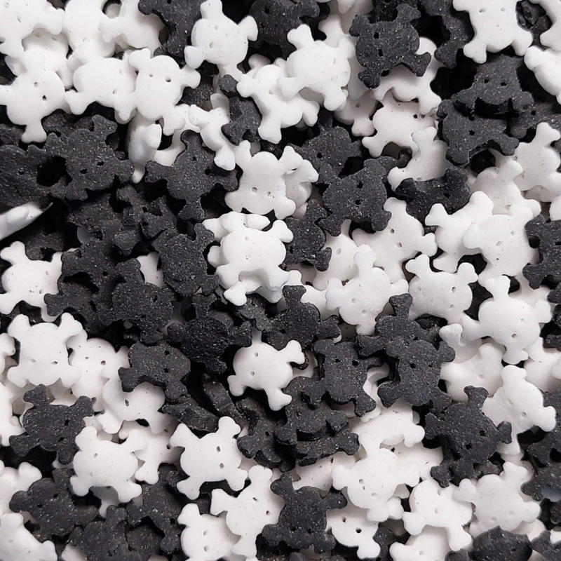 op. 30 g Białe i czarne konfetti cukrowe - czaszki - posypka dekoracyjna na Halloween - dł. 10 mm