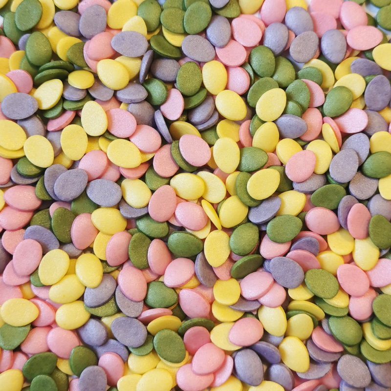 Seria kolorowych mieszanek konfetti cukrowych do dekorowania wyrobów cukierniczych. Dopracowane połączenie wzorów i kolorów, które dają tematyczny mix gotowy do użycia. Idealne rozwiązanie, które pozwala na szybkie i efektowne udekorowanie domowych wypieków i deserów. Pozwalają na stworzenie oryginalnej dekoracji przy niewielkim nakładzie pracy. Doskonale sprawdzą się również do dekorowania lukrowanych ciasteczek i pierniczków. Posypka cukrowa o chrupiącej konsystencji, do dekoracji cukierniczych. Dekoracja wytwarzana na bazie cukru, co zapewnia jej długi termin przydatności do spożycia. Uniwersalny słodki smak, nie wpływa na smak dekorowanych wyrobów. Do barwienia posypek stosowane są wyłącznie bezpieczne do spożycia barwniki spożywcze.