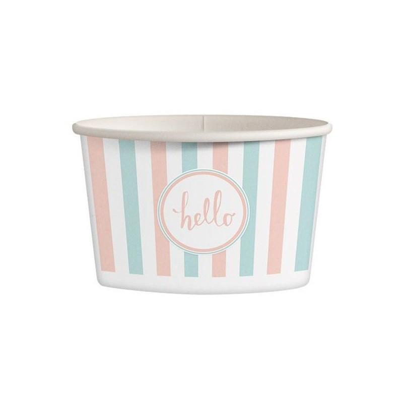 Opis: papierowe kubki/miski do lodów w ośmiu różnych pastelowych wzorach.