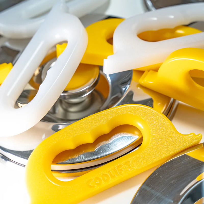 COOLIFT pozwala chwycić rant termosu, podnieść go stabilnie i odłożyć bez wysiłku. Obsługujesz gości profesjonalnie. Szybciej, bez szarpania, bez brudnych dłoni, bez strat. Chwytak pasuje do standardowych kuwet pozzetti o średnicy 20 centymetrów. Jest wykonany z materiału przeznaczonego do kontaktu z żywnością. Zaprojektowany i produkowany w Polsce. Posiada pozytywną ocenę Państwowego Zakładu Higieny.