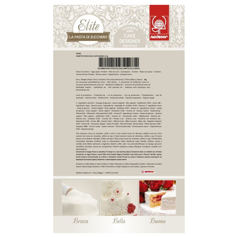 1kg BIAŁA Masa cukrowa do obkładania tortów ELITE BIANCA 25428 Modecor: