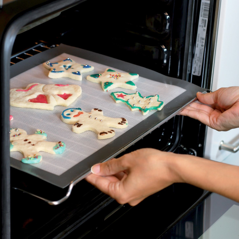 Uniwersalna mata cukiernicza z włókna szklanego z powłoką silikonową. Doskonale sprawdzi się jako stolnica do wałkowania ciasta i masy cukrowej. Przeznaczona do pieczenia i mrożenia.