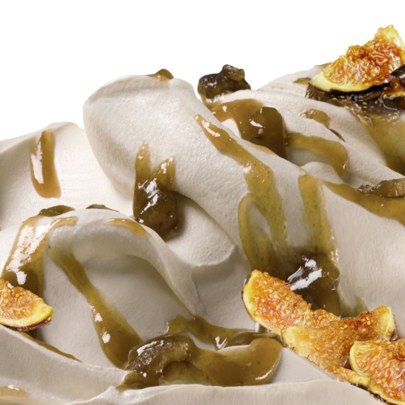 BASE RICOTTA - to kompletna baza, która pozwala na przygotowanie wyśmienitych lodów o smaku sera ricotta. Doskonale sprawdzi się podczas tworzenia klasycznego smaku lodów inspirowanych tradycyjnym włoskim ciastem - Cassata Siciliana. Jest to półprodukt w proszku na bazie odwodnionego sera ricotta (28%), który wystarczy połączyć z wodą oraz cukrem w odpowiednich proporcjach (w procesie gorącym), aby uzyskać aromatyczne, kremowe i stabilne lody o charakterystycznym smaku. Lody charakteryzują się kremową konsystencją i doskonale łączą się z różnego rodzaju owocowymi pastami variegato - do przekładania i dekorowania.