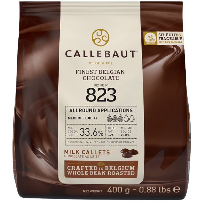 op. 400 g Mleczna czekolada o zaw. 33.6% kakao - RECIPE N°823 Callebaut - nr. kat. 823-E0-D94