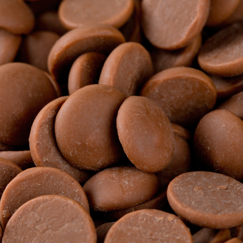 Czekolada mleczna produkowana w dużych dyskach, które łatwo się rozpuszczają.