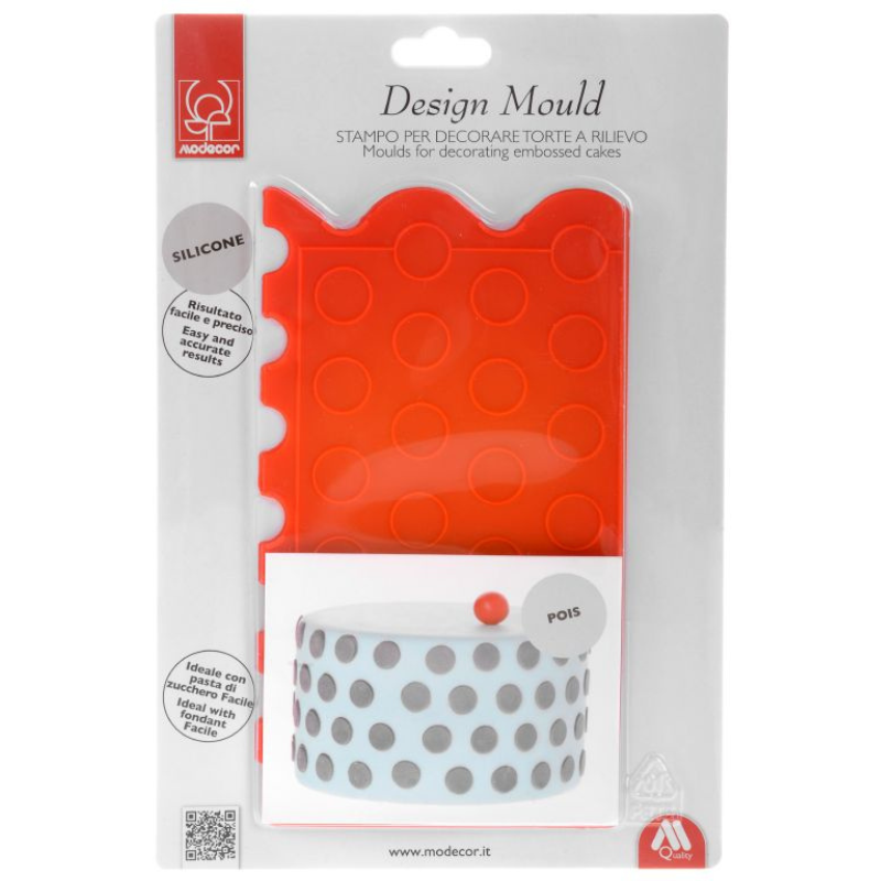 SILICONE DESIGN MOULD - to seria płaskich form silikonowych dostępnych w różnych wzorach przeznaczonych do tworzenia tłoczonych dekoracji z masy cukrowej. Stosowanie form pozwala na proste i szybkie wykonywanie precyzyjnych dekoracji. Tłoczone dekoracje idealnie sprawdzą się na tortach obłożonych masą cukrową, gładkim tynkiem lub kremem. Do tłoczenia dekoracji można stosować kolorowe masy cukrowe. Gotowe dekoracje można również dowolnie urozmaicać przy użyciu barwników, farb i pyłków spożywczych. Formy wykonane z silikonu są elastyczne, co zapewnia łatwe przenoszenie dekoracji na tort.