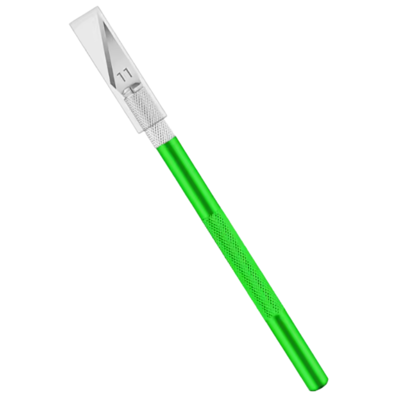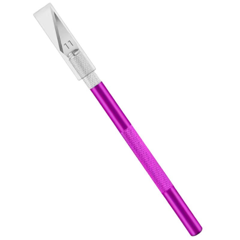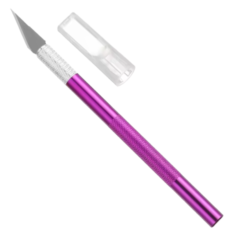 Wygodny nożyk do precyzyjnych dekoracji z wymiennym ostrzem ze stali nierdzewnej. Skalpel cukierniczy w różnych kolorach, które wysyłamy losowo zależnie od dostępności produktu.