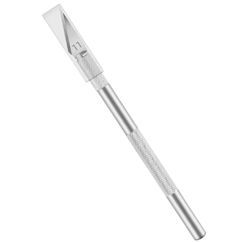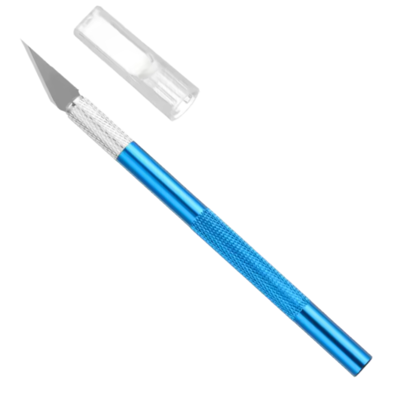 Aluminiowy skalpel cukierniczy z wymiennym ostrzem ze stali nierdzewnej. Lekkie i wygodne narzędzie cukiernicze do precyzyjnych dekoracji. Przeznaczone do wycinania dekoracji z masy cukrowej, marcepanu i czekolady. Niezbędne narzędzie podczas obkładania tortów lukrem plastycznym. Bardzo przydatne podczas tworzenia drobnych detali i elementów dekoracyjnych. Nożyk nadaje się również do wycinania szablonów z papieru oraz przycinania foli cukierniczych, na przykład folii gitarowej lub rantowej.
