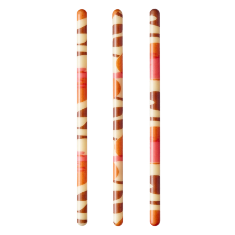 Zestaw czekoladowych dekoracji w formie długich patyczków z artystycznym i kolorowym nadrukiem. Dekoracja inspirowana podróżami i malarstwem z różnych zakątków świata.