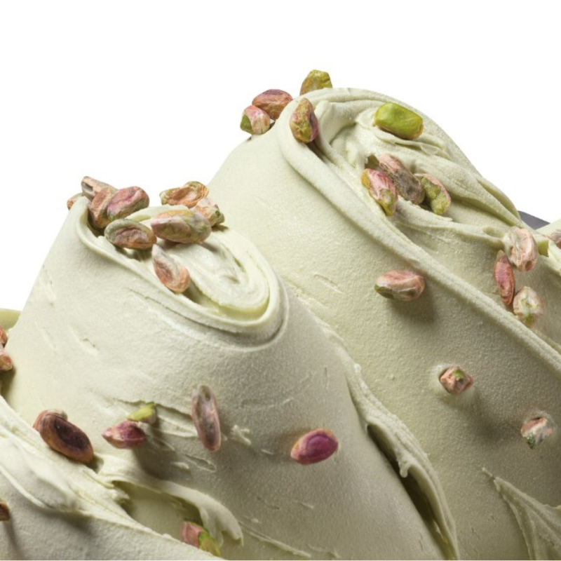 Kremowa pasta o czystym smaku prażonych pistacji prosto z Bronte DOP i naturalnie zielonej barwie. Wytwarzana z najwyższej jakości zielonych pistacji (z certyfikatem pochodzenia). Intensywny, naturalny smak i barwa (bez dodatku aromatów i barwników). Pozwala na tworzenie lodów rzemieślniczych o kremowej i (odpowiednio) gęstej konsystencji. Pasta doskonale sprawdzi się również do produkcji lodów wegańskich, ponieważ nie zawiera składników pochodzenia zwierzęcego. Przeznaczona jest również do stosowania w różnego rodzaju wyrobach cukierniczych (na przykład kremach, masach czy nadzieniach - również tych do pralin). Zalecane dozowanie podczas produkcji lodów oraz wyrobu kremów to 80-100 g pasty na 1 kg mieszanki bazowej.