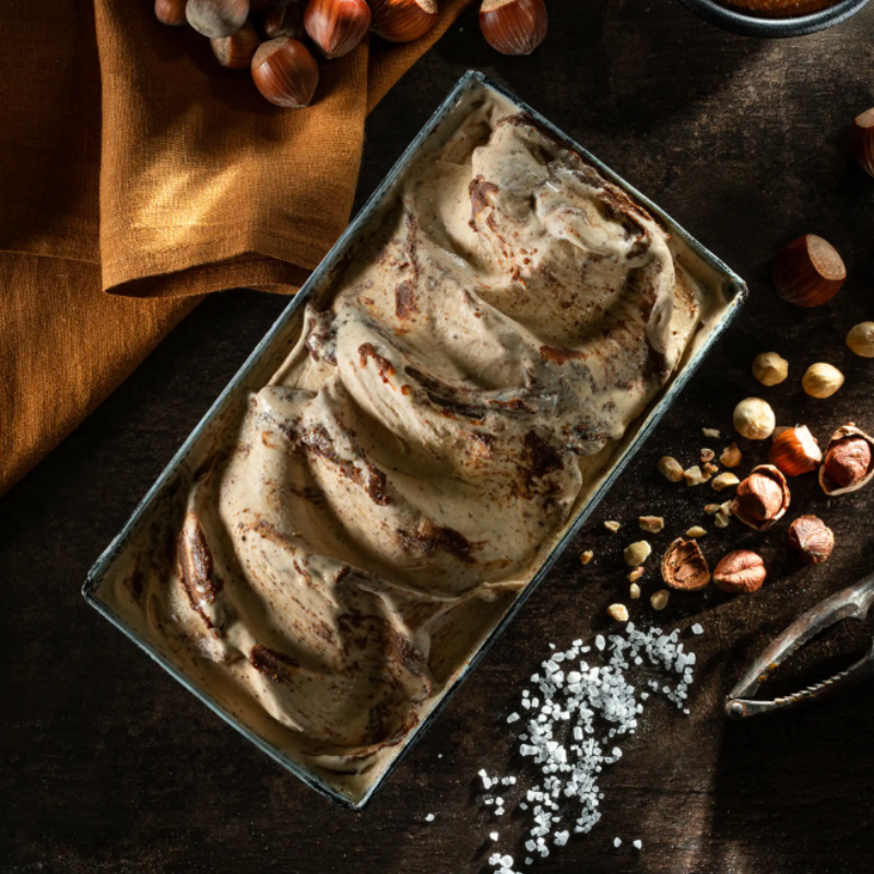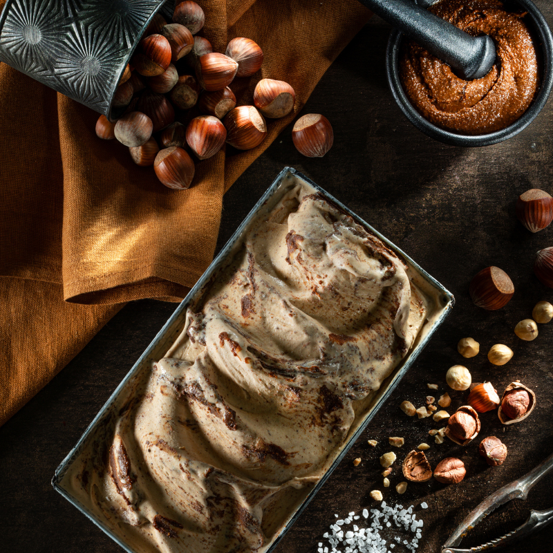 STRACCIATA DI NOCCIOLA TOSTATA SALATA - to wyjątkowa pasta do lodów w postaci głęboko prażonego pesto z surowych orzechów laskowych z dodatkiem soli morskiej (92.5% zawartość pasty orzechowej). Intensywny smak prażonych orzechów uwydatniony dodatkiem soli morskiej. Kremowa i gęsta konsystencja z chrupiącymi drobinkami orzechów. Pesto orzechowe doskonale sprawdza się do produkcji lodów orzechowych oraz do dekoracji i przekładania lodów w kuwetach. Nowoczesna odsłona lodów z orzechami!