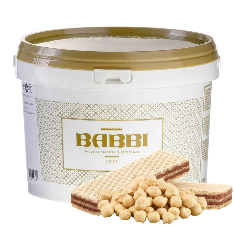 Variegato Praline - krem z kakao i orzechów laskowych z dodatkiem karmelizowanych orzechów laskowych i chrupiących wafelków orzechowych.