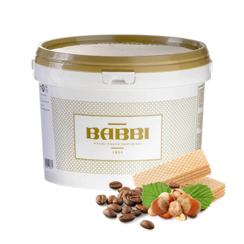 Składniki: olej słonecznikowy, cukier, pralina z orzechów laskowych (orzechy laskowe, cukier), dekstroza, kawa mielona (8.2%), prażone orzechy laskowe, kakao w proszku, wafelek (4%) (mąka pszenna, skrobia ziemniaczana, olej kokosowy, odtłuszczone mleko w proszku, cukier, pełnoziarnista mąka sojowa, emulgator lecytyna sojowa (E322), żółtko jaja w proszku, substancja spulchniająca: węglany sodu (E500), difosforany (E450), sól), odtłuszczone mleko w proszku, emulgator: lecytyna sojowa (E322), ekstrakt z lasek wanilii Bourbon, aromaty; może zawierać śladowe ilości innych orzechów, sezamu, orzechów arachidowych i ich pochodnych.