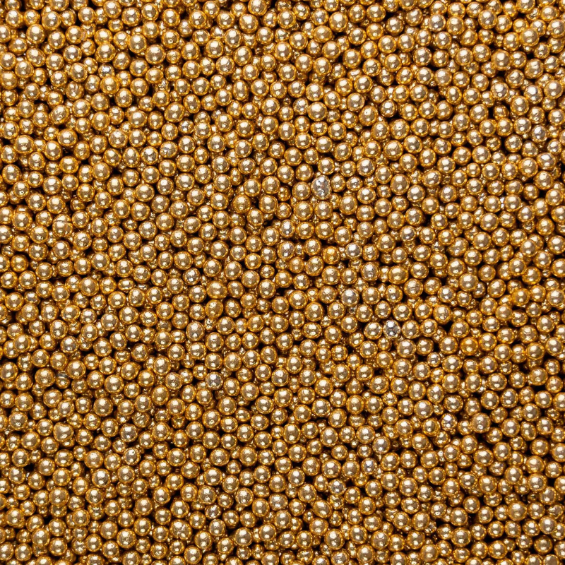 Błyszcząca posypka cukrowa do dekoracji tortów, babeczek, deserów i czego tylko zamarzysz! Złote perełki z metalicznym połyskiem o średnicy 4-5 mm. Gotowa do użycia posypka dekoracyjna. Uwaga! Rzeczywiste kolory posypek cukrowych mogą nieznacznie różnić się od wizualizacji ujętej na zdjęciach katalogowych produktu.