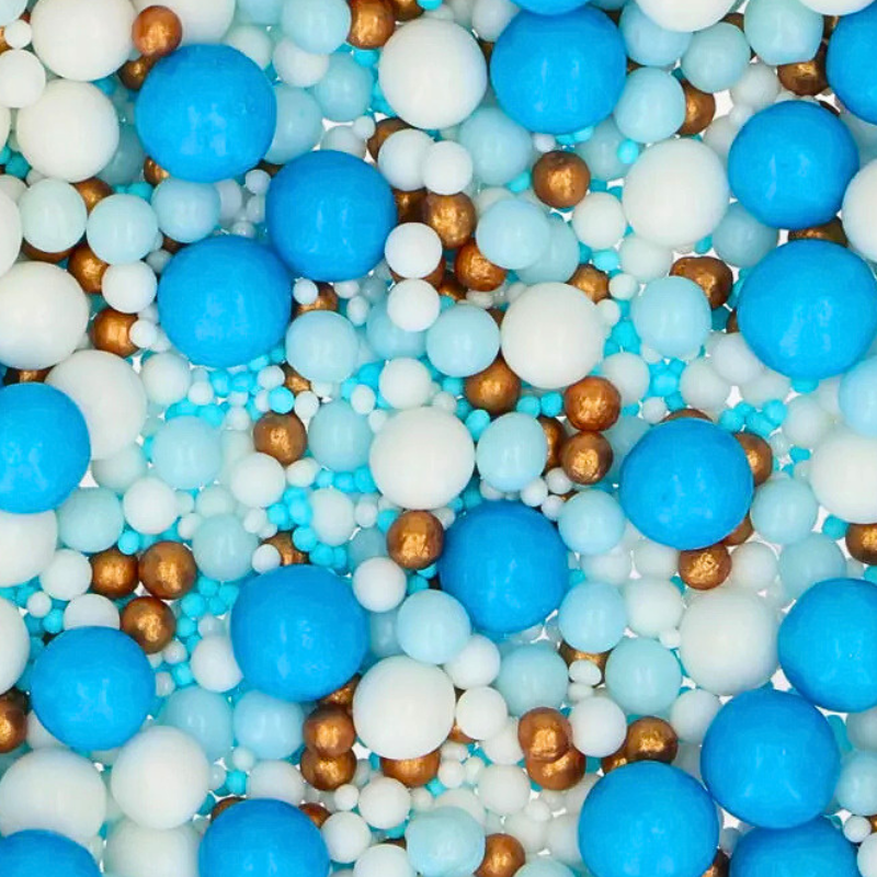 op. 80 g Blue Celebration - mieszanka perełek cukrowych w różnych rozmiarach - posypka dekoracyjna - Fun Cakes