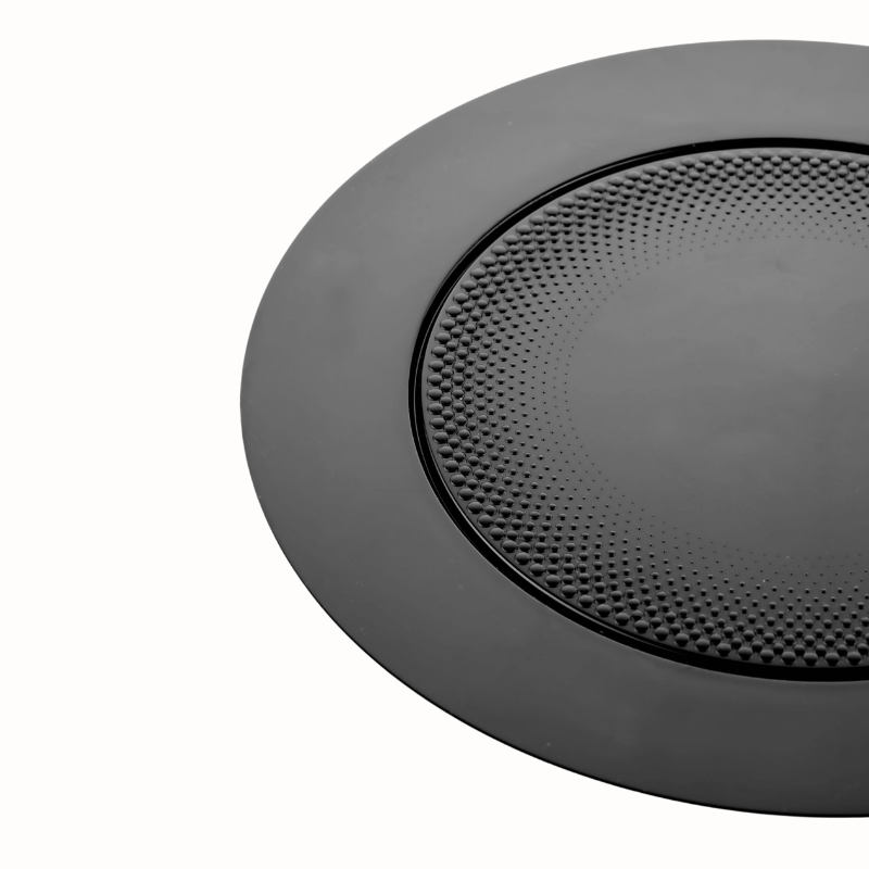 Proste i eleganckie plastikowe tacki wielorazowego użytku do prezentacji, serwowania i transportu wypieków i deserów. Antypoślizgowa środkowa część tacki zapewnia stabilność i bezpieczeństwo podczas serwowania i transportu wyrobów. Okrągłe podkładki doskonale sprawdzą się do serwowania i prezentacji nowoczesnych tortów i deserów musowych. Minimalistyczne wzornictwo podkreśla estetykę gotowego produktu, dodając mu elegancji. Tacki wykonane są z tworzywa przeznaczonego do kontaktu z żywością. Podkładki to produkt wielorazowego użytku. Produkt należy myć ręcznie przy użyciu delikatnych środków czyszczących.